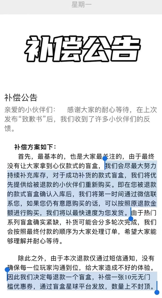 一个盲盒系列中通常都会有“热款”“雷款”和“隐藏款”。为了提高“热款”和“隐藏款”的命中率,很多盲盒爱好者都采用端盒方式。然而,近日,多名消费者反映,他们在线上盲盒平台“盲盒星球”端盒时,却遇到平台拖延发货、选择性发货、单方面砍单的情况。不仅想要的盲盒没到手,还无法退款。 陕西西安消费者张先生表示,今年1月,他在“盲盒星球”小程序花1205元下单了一整盒“BOB谎言与真相”系列盲盒,其中共包含12款,发货时间显示为2月22日。 “BOB谎言与真相”系列盲盒然而22日,他却收到“盲盒星球”发来的短信,被告知由于供货问题,盲盒超时无法发出。为此,平台给出了三个解决方案:一是用畅销款系列原封盲盒来替换;二是选择退款;三是继续等待。 ![]() 张先生选择了继续等待。提交表单后,系统显示“30天之内发货”。3月1日,张先生终于收到了日盼夜盼的盲盒,然而打开包裹后他发现,对方只发来其中的5款盲盒,而且还全都是不受欢迎的“雷款”(即大多数人觉得不好看的款式,“雷款”在二级市场的售价可能仅为官方售价的一半)。 张先生收到的5款盲盒张先生说:“5个盲盒中,4个在二级市场售价不超过100元,都低于官方售价。没发货的7个盲盒中有3个热款,目前在二级市场溢价严重,售价3000多元到6000多元不等,远高于官方售价。另外4个盲盒在二级市场的售价也比官方售价高。” 4月13日“BOB谎言与真相”系列二级市场报价坚持继续等待的张先生在半个多月后再次收到“盲盒星球”的短信,这次对方直接给张先生退单了,理由是“疫情原因无法供货”。 ![]() 虽然未发货盲盒的欠款随后退了回来,但张先生觉得不解:“我整盒端的,为什么只是部分发货,难道疫情只影响了退单的那7个盲盒?” 上海消费者史女士也遇到了类似情况。今年1月,她在“盲盒星球”端盒了泡泡玛特“labubu精灵艺术”盲盒,每个盲盒69元,总价828元。但此后她只收到了订单中的9个“雷款”,它们在二级市场的参考售价仅为25元-48元不等。而未发货的2个“热款”和1个“隐藏款”在二级市场分别卖到了177元、125元和1729元。 ![]() 经过与客服多次沟通,2月24日,“盲盒星球”按二级市场参考售价直接给史女士退还了1600元“隐藏款”的回购款,并对未发货的盲盒做退款处理。 据了解,“盲盒星球”维权群里有400多人,大部分人遭遇的都是“热款”被退款。张先生估算,该群内涉及被退款订单总额约5.9万元。有消费者质疑,“盲盒星球”取消的订单都是“热款”盲盒,而所谓的“雷款”仍在发货。 对此,盲盒星球开发公司浙江乐见网络科技有限公司法定代表人吴文东在接受媒体采访时表示,近期平台的确频繁收到投诉。受疫情影响,品牌商和供货商无法及时安排发货。平台认为,目前做退款处理是对用户最公平的处理方式。 针对大量投诉,3月31日,“盲盒星球”官方微信公众号发布致歉信表示,盲盒星球下架了所有可能导致延期的商品,以确保目前在售商品都可以如期发货,不会再出现延期不发货的情况。 ![]() 但有消费者发现,退款订单中的部分盲盒系列,如泡泡玛特“The monster水果”系列、“Molly十五周年回忆相册”、“Skullpanda夜之城”仍然在“盲盒星球”小程序销售,并未下架。 部分退款订单中的盲盒仍在销售随后,4月11日,“盲盒星球”又发布了一则补偿公告,称待缺货盲盒成功补货后将优先给退款的消费者按原退款金额重新购买的权限。同时,将给予每个退款盲盒补偿一张10元优惠券供消费者使用。 ![]() 北京理道律师事务所律师王久成表示,消费者在盲盒星球平台上下单成功,即商家与消费者之间构成买卖合同关系。盲盒星球在未与消费者沟通协商的情况下直接砍单的行为,不对消费者发生法律效力,属于根本违约。商家可以应消费者需求选择承担继续履行发货义务,或者向消费者返还全部货款并承担因此造成消费者损失的违约责任。 北京颐合中鸿律师事务所律师芦云认为,在司法实践中,对于商家的砍单行为,法院可能会去调取商家的进销数据,如果商家并不具备与订单数量相匹配的销售能力却仍然在销售,然后再砍单,那么商家就涉嫌虚假宣传,甚至可能构成欺诈。如果进销数据没有问题,确实是由于疫情原因不能发货,那么商家并不对消费者构成违约,这时需要双方进一步协商,是解除合同退款还是变更合同延长发货。 针对这次受影响的用户,盲盒星球方面随后补充表示,初步打算给予一定补偿,如免费赠送定制的无门槛优惠券、消费积分,新款盲盒等。 |