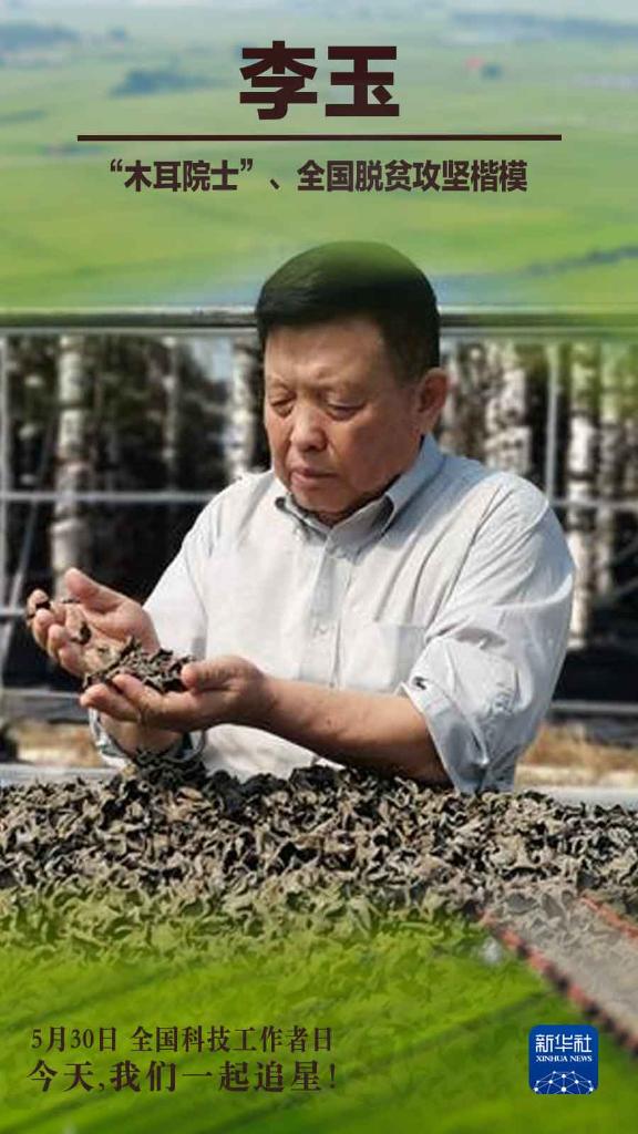 走过山区、到过边陲 他先后制定“南菇北移”“北耳南扩”等 食用菌产业发展战略 研发出300多项食用菌栽培技术 培育了45个适宜贫困地区应用的食用菌新品种 帮助数万贫困户成功实现脱贫 “老骥伏枥,志在千里。 我与木耳打了40年的交道, 更会一直‘交往’下去。” 李玉说。