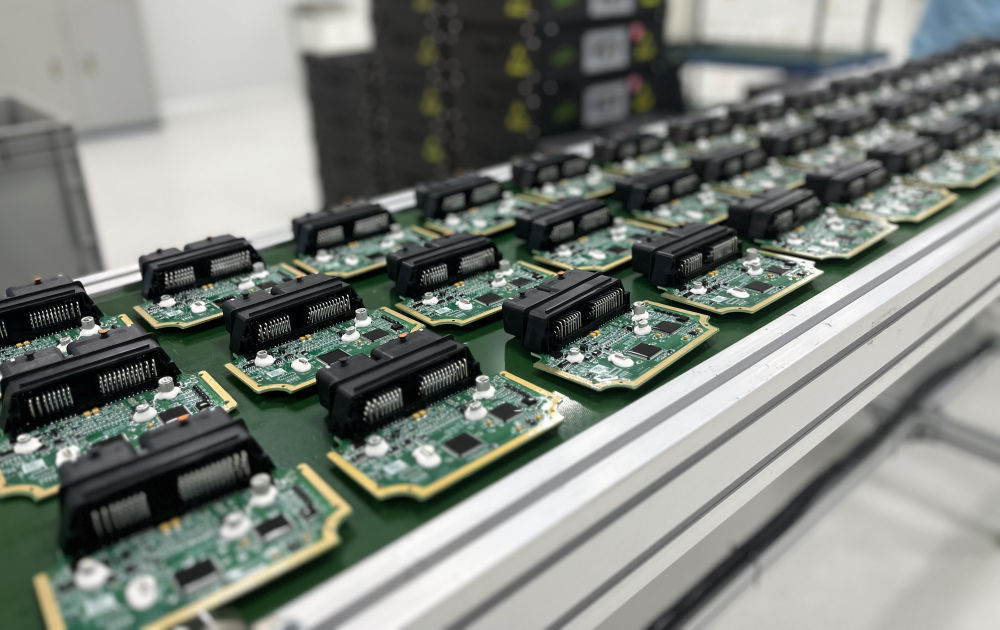 在天津易鼎丰动力科技有限公司车间生产线上拍摄的出口法国的整车控制器产品(2024年2月18日摄)。新华社发 天津易鼎丰动力科技有限公司迎来了一年中最为繁忙的生产季,8800平方米的汽车电控单元生产车间里,每过一小时,就有300多台整车控制器从表面贴装和装配测试生产线上顺利下线,准备销往国内外市场。