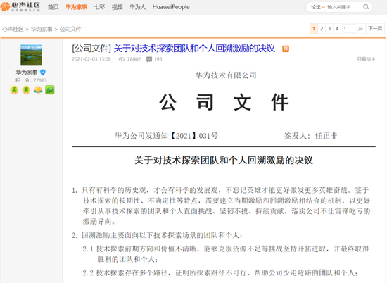 又是别人家的公司。 据界面新闻,近日,华为轮值董事长胡厚崑在公司内部宣布:华为2020年持续实施股票分红,预计每股1.86元。 目前,华为2020年报暂未出炉。据中国基金报,2018年华为的总股数高达222亿股,这两年总股数应该只增不减,华为起码分红了400多亿!值得注意的是,与A股上市公司对比来看,在分红力度上,华为分红总额可跻身A股前六名。 ![]() 100%由员工持有的华为 华为是一家由员工100%持股的公司,“全员持股”是华为为人称道的特色管理制度之一。华为2019年年报显示,股东会为华为最高权力机构,由工会与任正非两位股东组成。 持股分红也是华为员工收入的重要组成部分,据悉,华为员工薪酬主要包括三部分:工资、奖金和分红;当然如若外派国外,还有外派补助+艰苦补助。 根据华为2019年年报,华为通过工会实行员工持股计划,参与人数为104,572人,参与人仅为公司员工。目前,根据华为的全员持股制度,华为创始人任正非所持有的股份已经下降至1%左右。但是,由于大部分普通员工所持有的股份属于虚拟股份,不具备投票权,所以绝大部分的投票权仍然掌握在华为的核心管理团队手中。同时,公司还为任正非保留了“一票否决权”,这实现了任正非仅仅在持有1%左右股份的情况下仍然能够控制华为。 2019年,华为股价为7.85元/股,其中每股分红2.11元。华为去年在工资、薪金及其他福利上的支出达1349.37亿元,以19.4万名员工计算,华为员工人均薪酬达69.5万元。 华为将对历史贡献进行回溯激励 任正非:不忘记英雄 2月3日,任正非签发31号电邮文件《关于对技术探索团队和个人回溯激励的决议》。这一决议是为了解决做出历史贡献但没有得到相应激励的技术探索团队和个人。决议说:只有有科学的历史观,才会有科学的发展观,不忘记英雄才能更好激发更多英雄奋战。 为了坚持华为“不让雷锋吃亏”的激励导向,该决议明确对贡献突出的团队和个人,可以给予一次性奖金补偿,进行人岗晋升和任职晋升,以及授予荣誉称号等精神激励。 ![]() 此次回溯激励主要面向技术探索场景的团队和个人,包括两大类: 1、技术探索前期方向和价值不清晰,能够克服资源不足等挑战坚持开拓进取,并最终取得胜利的团队和个人; 2、技术探索存在多个路径,证明所探索路径不可行、帮助公司少走弯路的团队和个人。 在激励实施方面,决议明确,回溯时段的个人绩效结果可以修改并作为该时段的最终绩效,具体激励内容可分为三类: 1、奖金激励。结合历史激励状况,可以对回溯团队和个人给予一次性奖金补偿。奖金原则上以及时激励(TIA)方式发放,由公司战略奖金支付; 2、升职激励。对贡献突出的个人可以先做人岗晋升和任职晋升,并同步调整薪酬待遇,长期激励可基于新的个人职级满配授予; 3、精神激励。鼓励分层级对回溯团队和个人做精神激励,如表彰大会、荣誉称号、勋章奖章和立体宣传等。 回溯激励的有效期:自发文开始生效,有效期为5年。 综合自界面新闻、中国基金报、华为心声社区 |